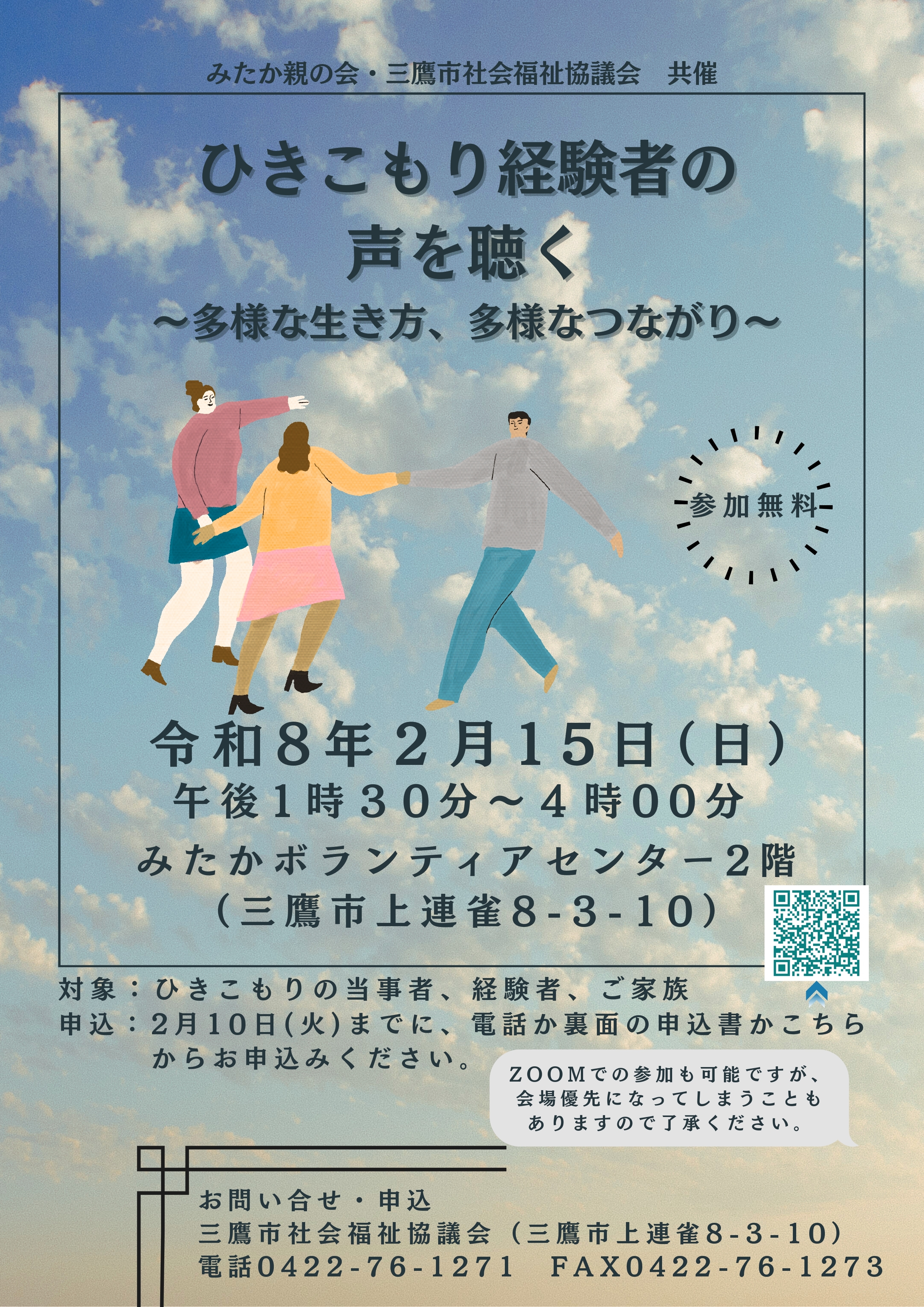ひきこもり経験者の声を聴く2026年 2月15日(日)13:30~16:00※予約状況はお問い合わせください詳細はこちら→