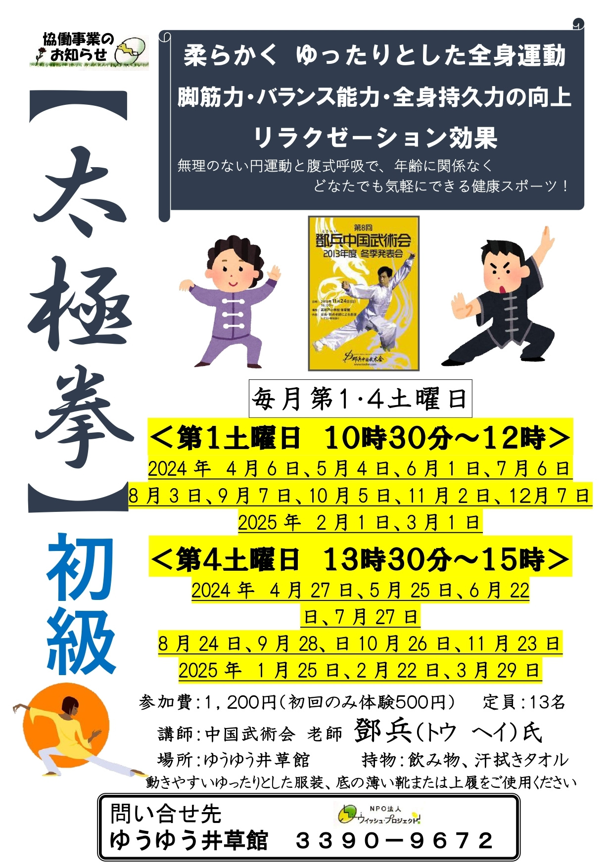参加費 各1200円(初回のみ体験500円)
